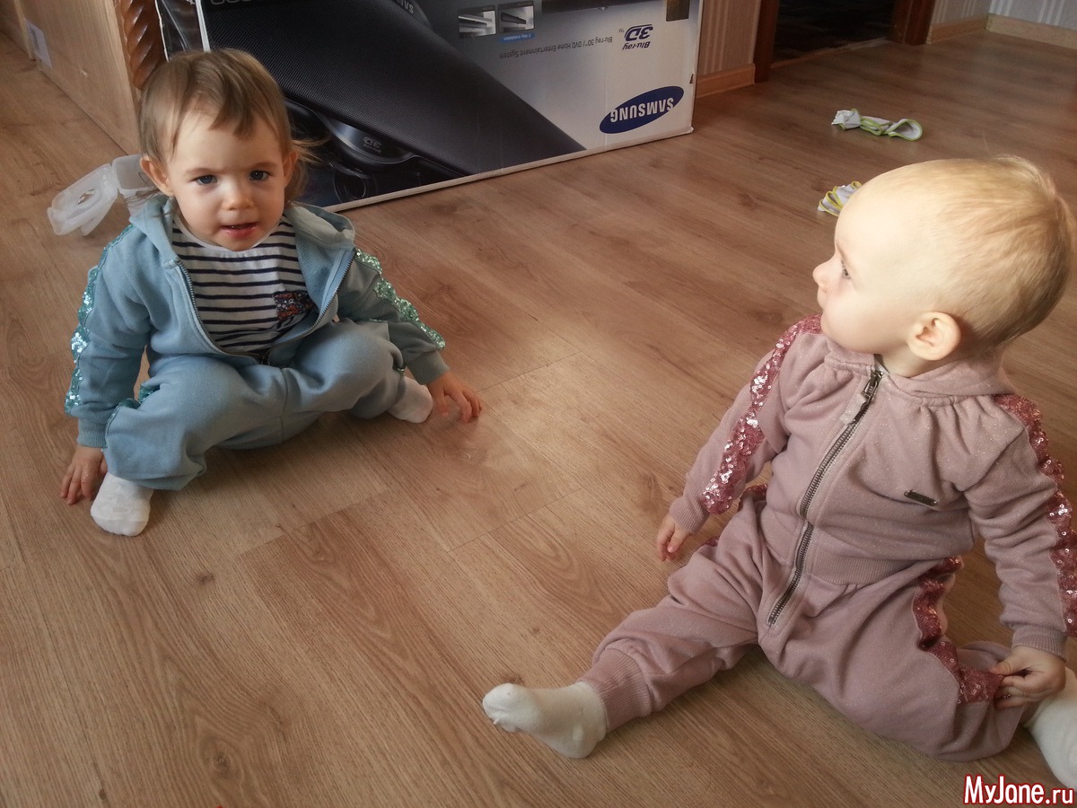 С речью пока у нас глухо как то. Говорят слогами, но мало. На уровне гав гав мяу и т. д. Если сильно напрячься, то может насобираю простейших слов. Зато пантомима у нас процветает. Иногда мне кажется, что и говорить то особой необходимости нет у них. потому как все покажут и жестами расскажут, так что драм. театр отдыхает. Между собой тоже прекрасно общаются. Мычат что то там, но главное что понимают друг друга. Невролог сказала мне что речь у двойни ждать нужно не раньше двух лет. Много читаем, рассматриваем книжки с картинками. Знают много животных, иногда сама офигиваю, когда они отличают гепарда от леопарда, а гиену от собаки. Рисуют, лепят из пластилина, пазлы складывают, всякие книжки с наклейками, где нужно наклеить недостающие детали, находят и клеют всю книгу за полчаса, строят из кубиков и конструктора большие башни, цвета пока только выучили красный, желтый и синий, остальные путают. из фигур треугольник, квадрат, круг хорошо, остальное тоже путают. Большой маленький соображают. Сортеры и пирамидки уже не интересно, давно все пересобирали сто раз. Скачут, поют на своем, танцуют и бесятся. В общем вроде волноваться вроде не стоит, но вот речь... Невролог тоже говорит что все у нас прекрасно и даже более чем, но хочет слышать нашу речь ( а кто не хочет то ( ( (). Поэтому "темповая задержка речи" в нашей карточке. По нормам-30 слов выдай в полтора года. При чем всякие га га и ам ам и т. д. нам не посчитали. А посчитали только мама, папа, баба. Вот так кратенько о нас! Если получится то фотки загружу еще.