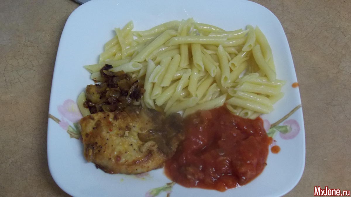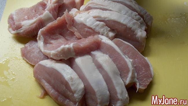 понятно, каким ветром Майка занесло в магазин. Но там, наверное как всегда, задумался и купил он там очень странных продуктов. Свинину например. Пришлось изобретать что-то из нее. Пожарил. Отбивать не хотел, Антони спал после суточного дежурства, помариновал ее.