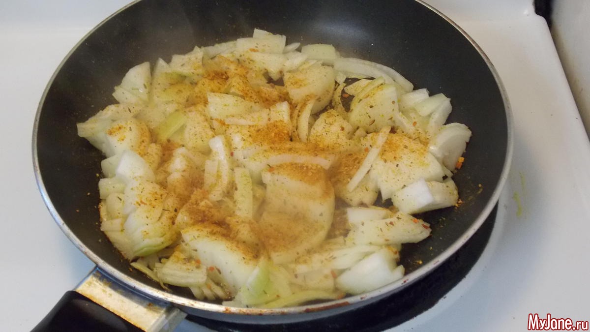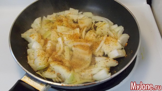 к свинине пожарим лук, с приправами из смеси куркумы, перца, барбариса и сухой зелени, чуть чеснока положим