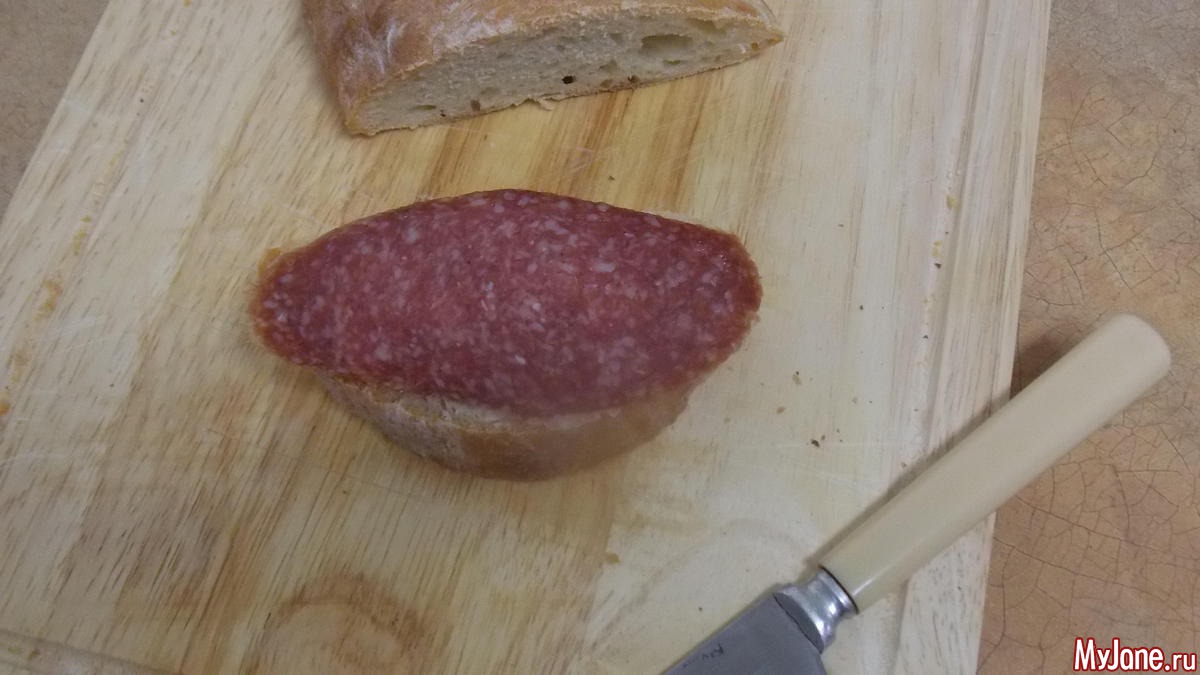 Микки купил колбасы твердого копчения. Я как раз собирался делать хлеб. Мик попросил сделать хлеб «чтобы кусок целиком положить» под его колбасу.