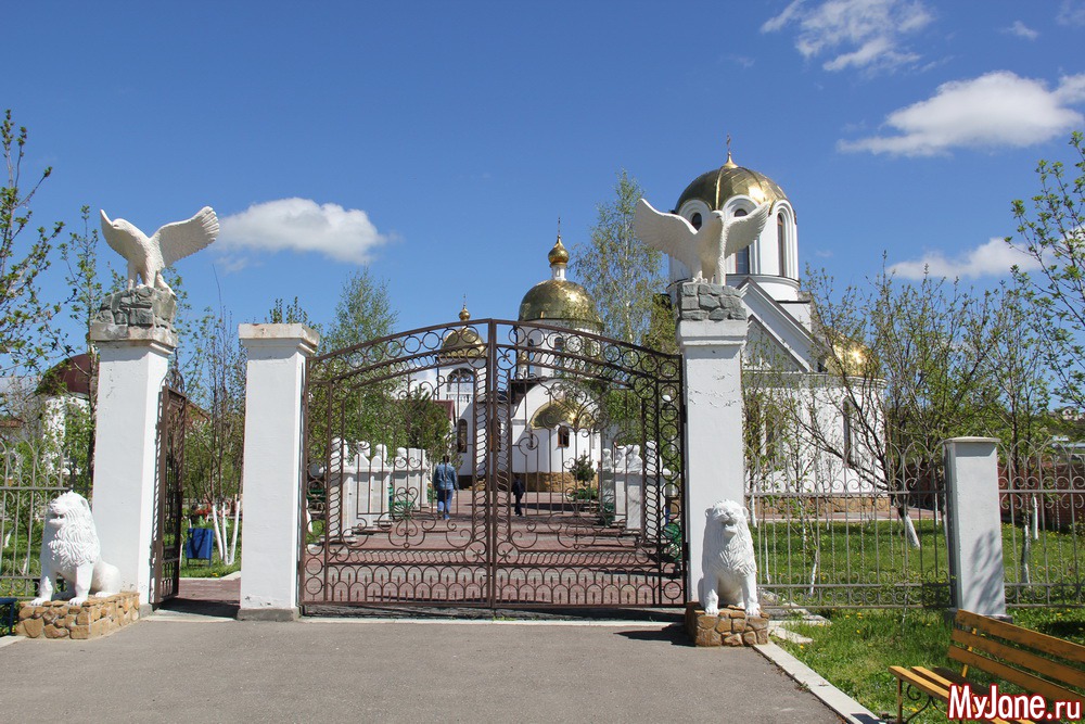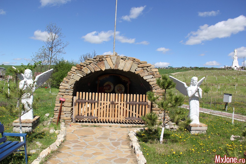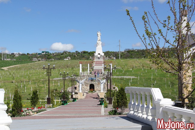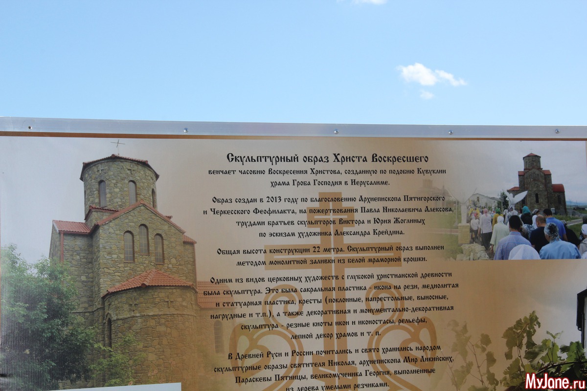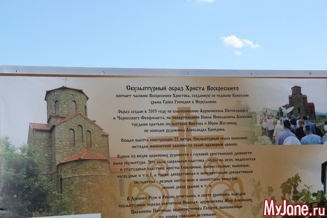 Погода в день нашей поездки выдалась удивительной - яркое солнце и необыкновенно голубое небо с красивыми облаками. Дорога была недолгой и я вообще не сразу поняла, что мы приехали к образу Христа Воскресшего, потому что со входа в комплекс (а это оказался целый церковный комплекс) его совсем не видно.
