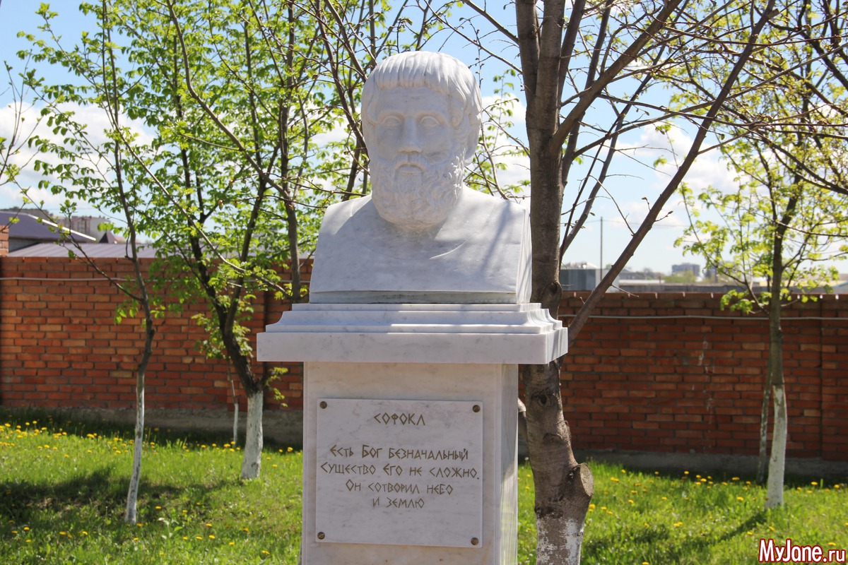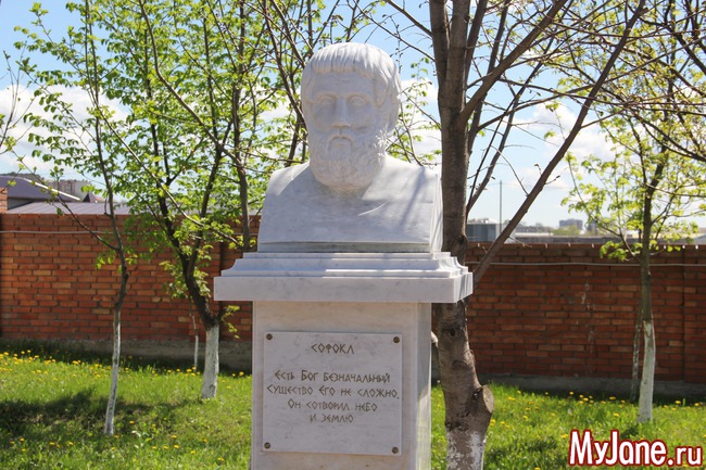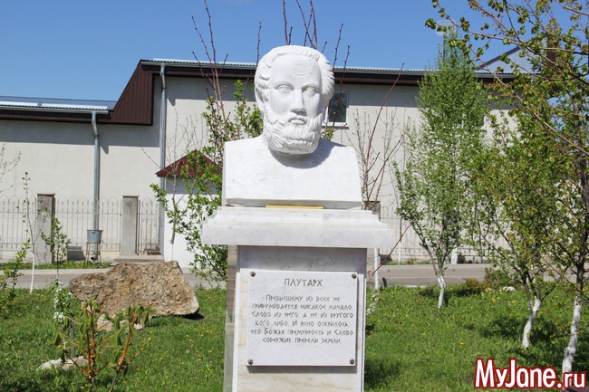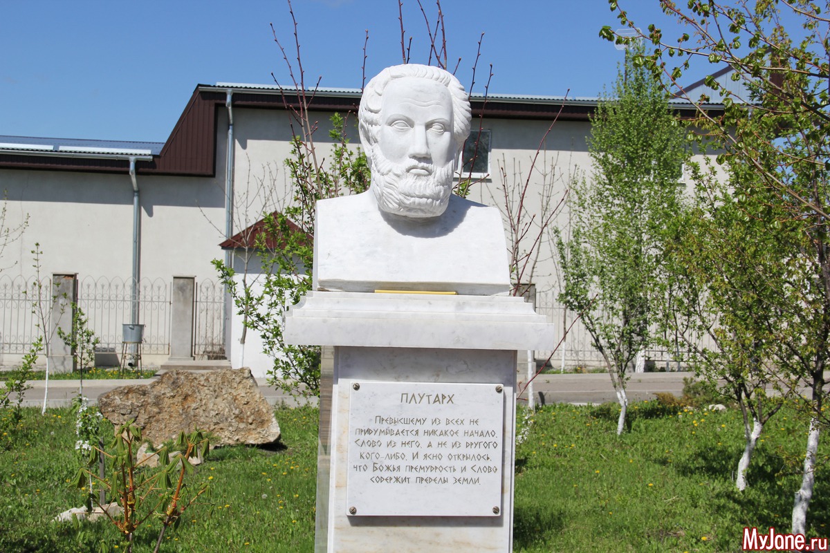 При входе расположены бюсты философов и писателей с их изречениями о религии и Боге.