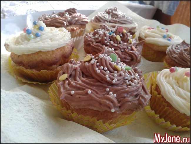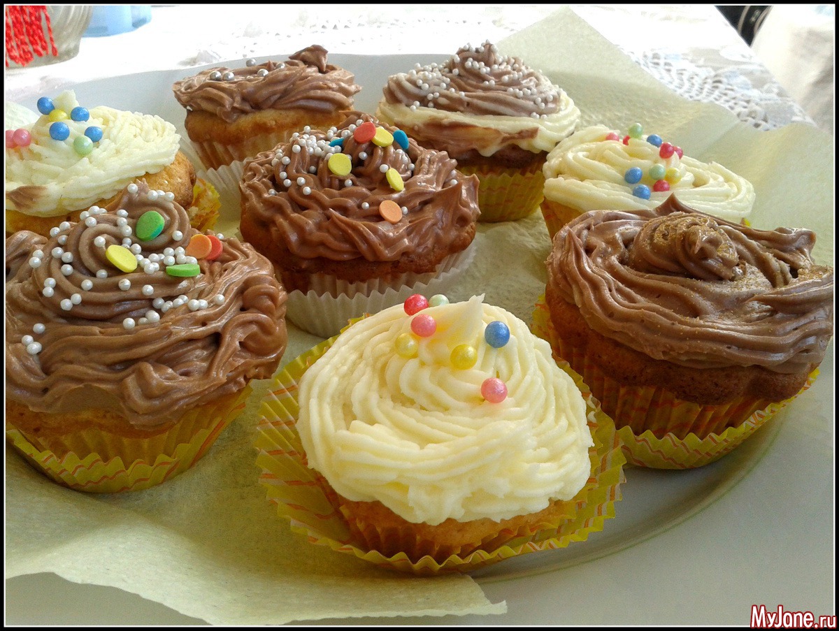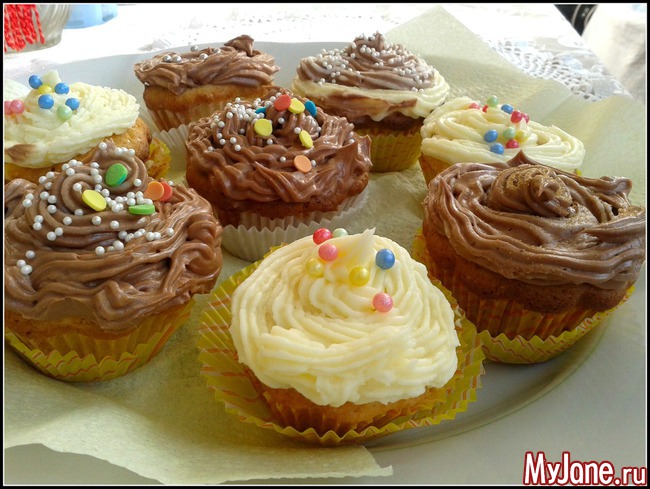 Ставим кексы на противень и убираем в духовку, разогретую до 180 градусов.