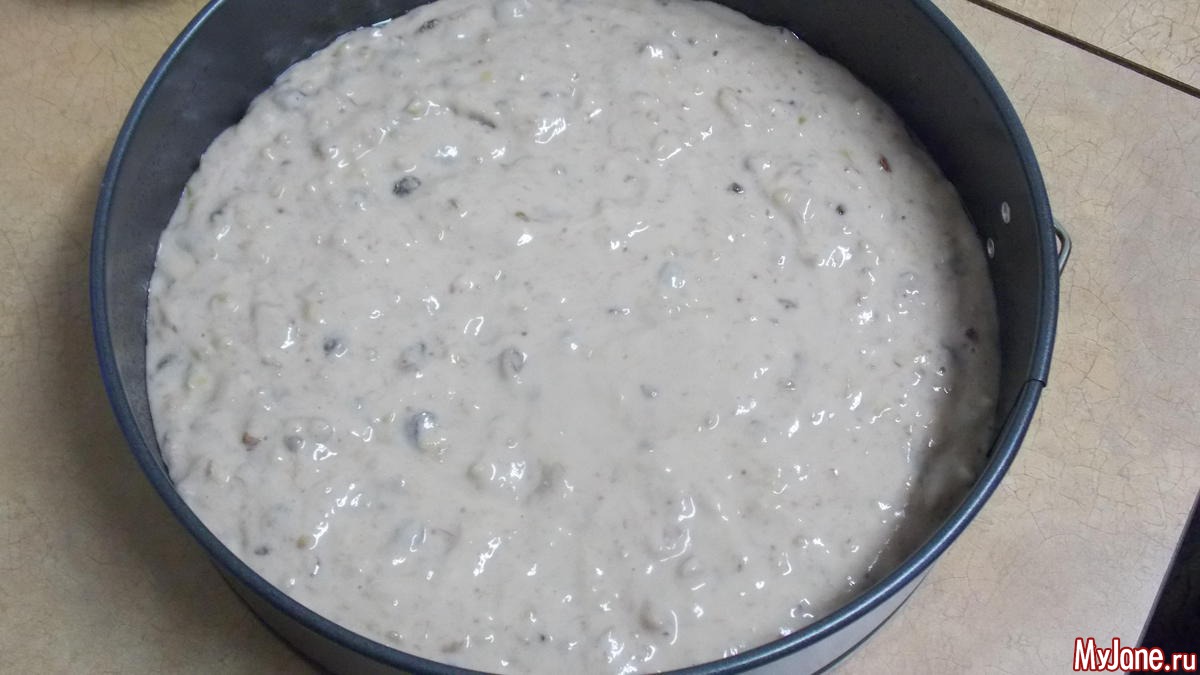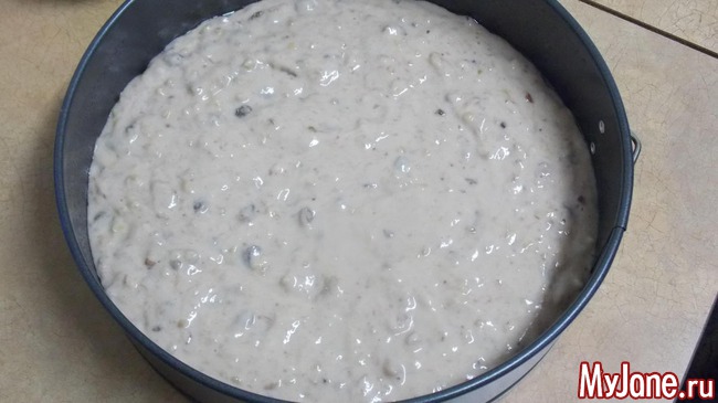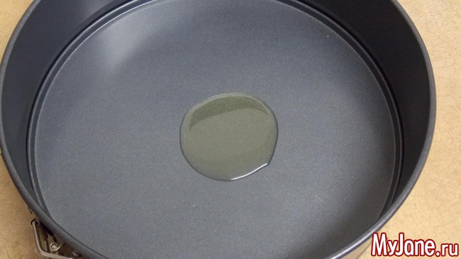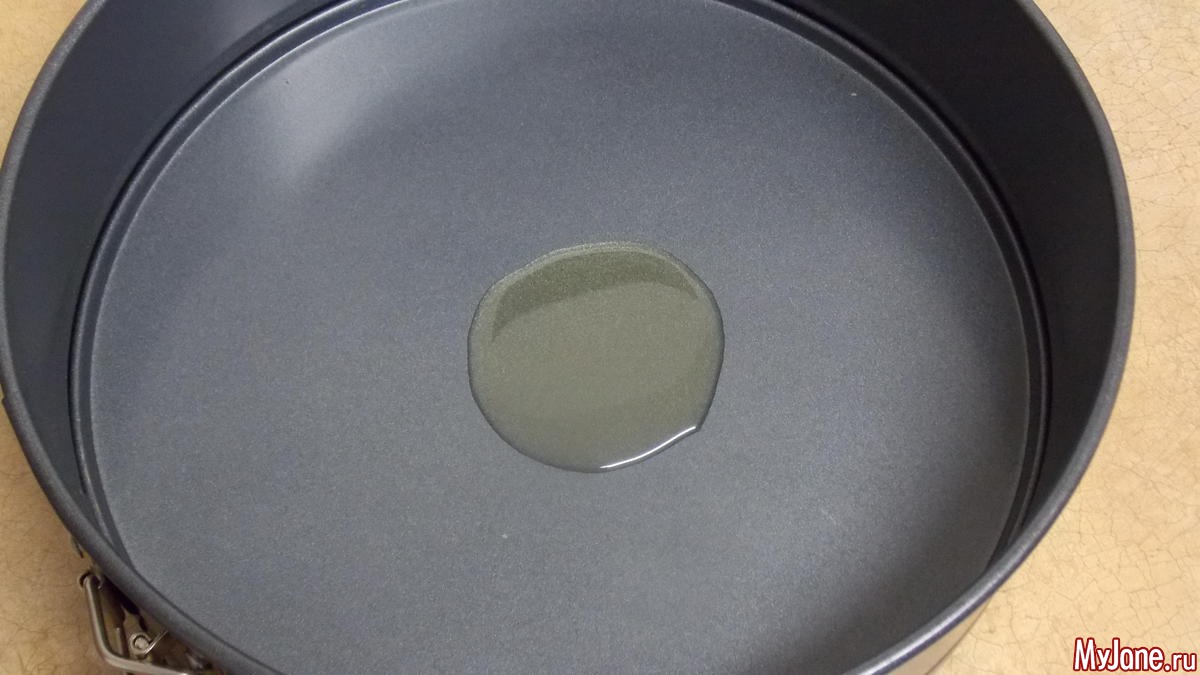 немного масла намазать на дно и бока разъемной формы, если не разъемная то смазать маслом и посыпать мукой