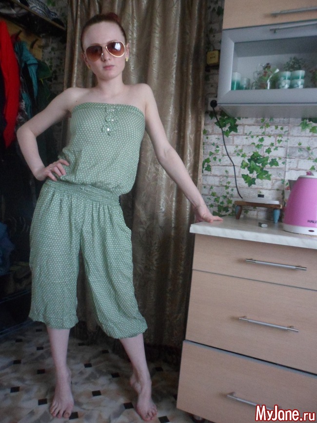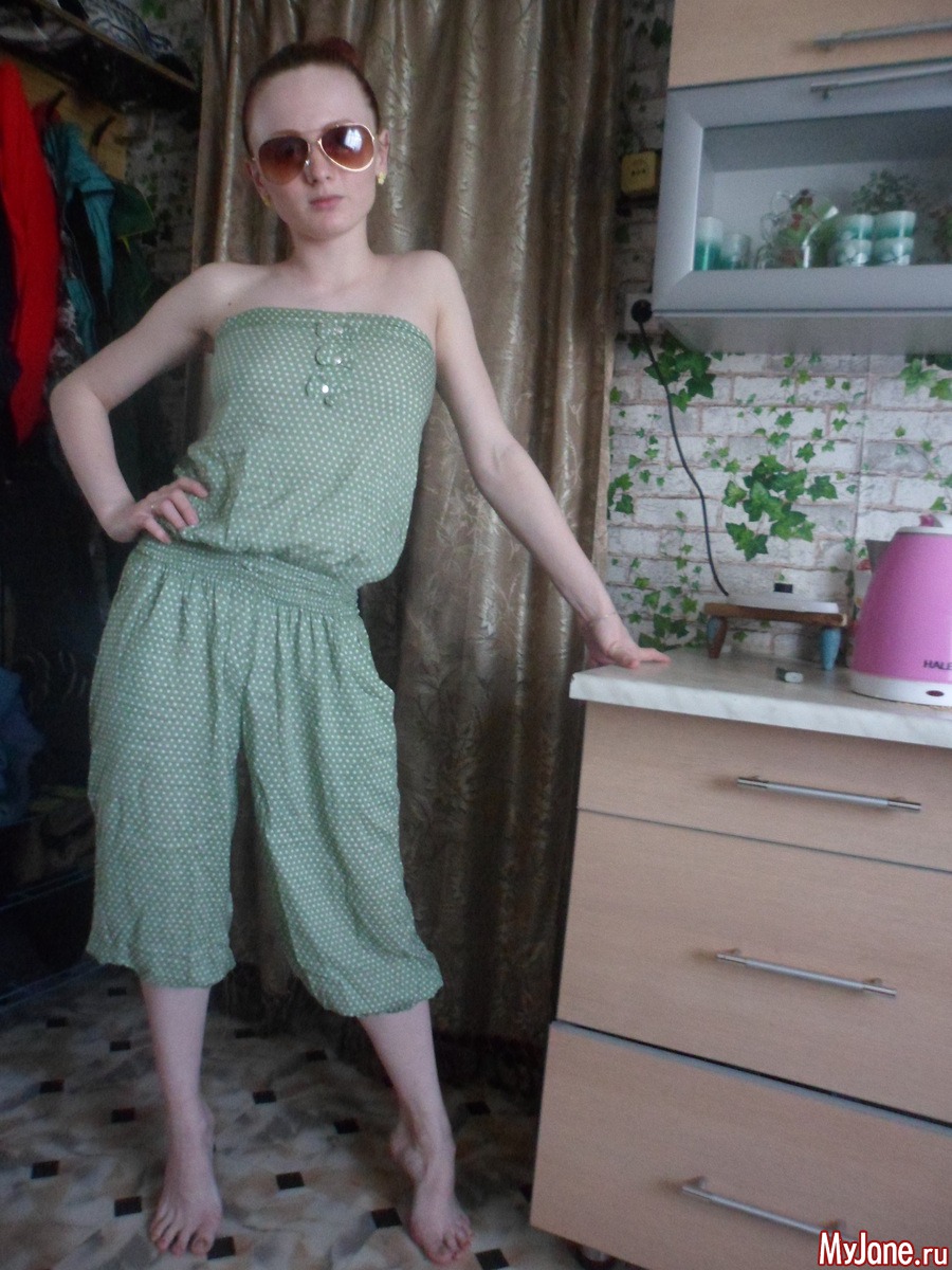 Ну и комбез) правда я со своей привычкой не мерять вещи немного пролетела... в том плане что мой нынешний размер сисек вообще не смотриться с ним.. без лифчика сидит хорошо! А без него ходить не могу- все таки молоко подтекает)))теперь о прически щас буду творить)))смешивать рыжие волосы с черным низом