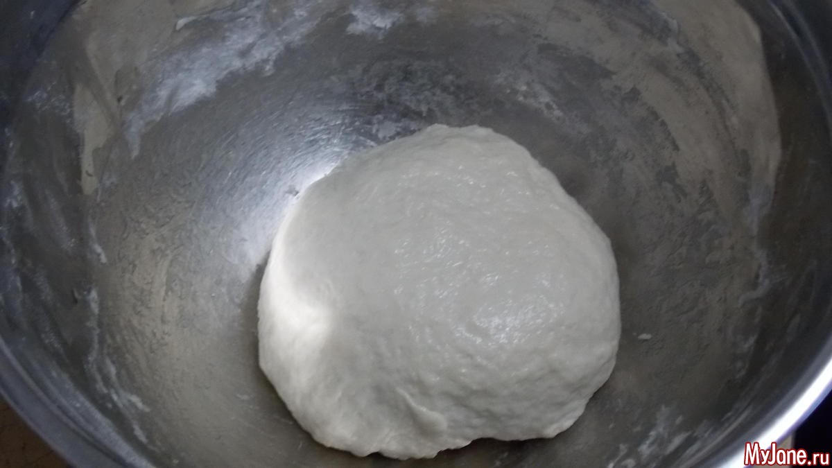 процесс обычный для дрожжевого теста. Заливаем теплой водой дрожжи и добавляем сахар. Оставляем минут на 15-20. Когда дрожжи поднимутся, добавляем муку, вымешиваем тесто, добавляем оливковое масло, вымешиваем опять и оставляем в тплом месте на 3-=40 минут