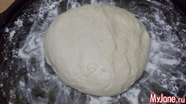когда тесто увеличилось вдвое, можно аккуратно его выкладывать подцепляя рукой по краю