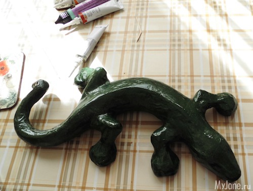 Это животное (подозреваю, что это варан) сделано из папье-маше. Размер 32 см.