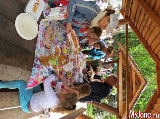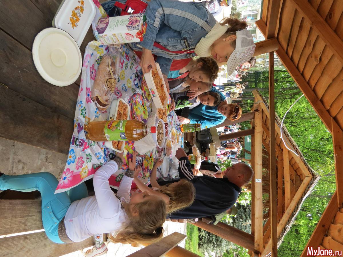 это там стоят беседки и самовар есть с чаем, остальное мы принесли с собой