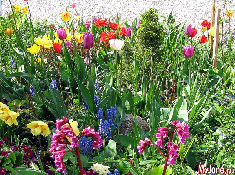 Интересно подобрано: тюльпаны отцветут - поднимутся пионы на их место!