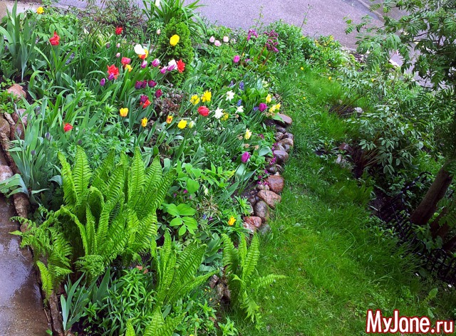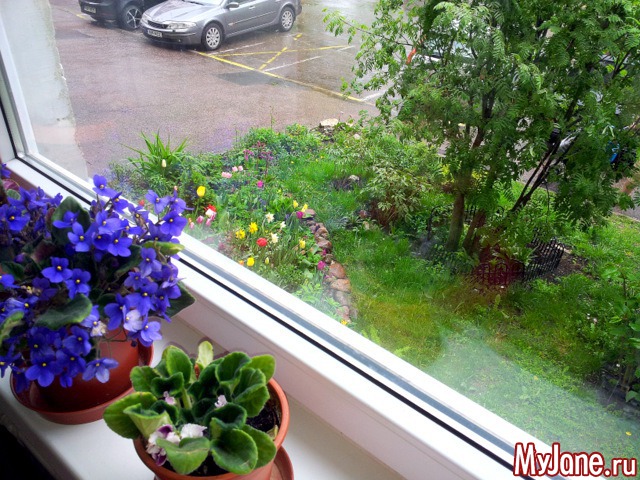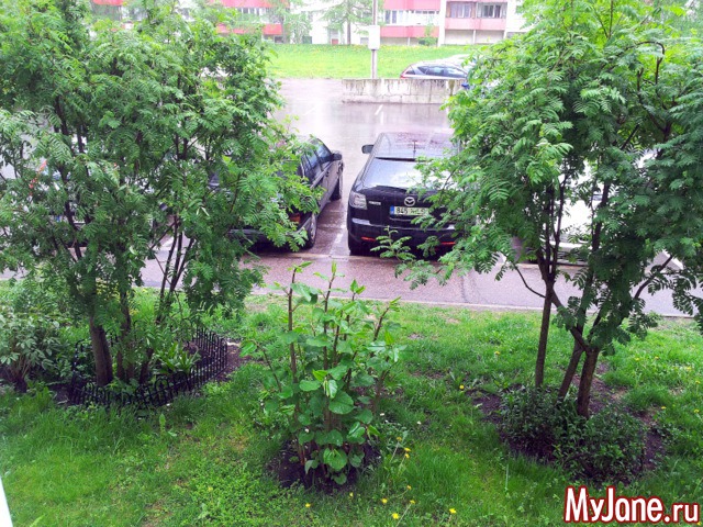 Водосток - это очень удобно! Когда идёт дождь, вода стремиться к цветам, кустарникам. Я ставлю большой таз под трубу, чтобы потом можно было полить цветы.