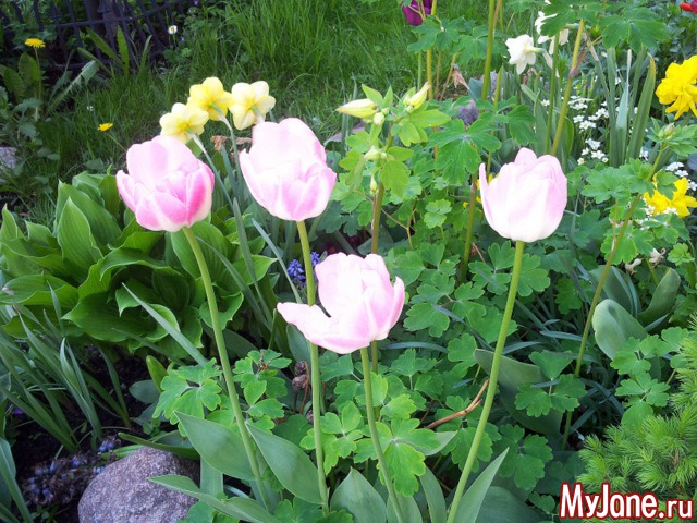 Когда сажала эти рябинки, они были, как тоненькие прутики. Теперь они цветут.
