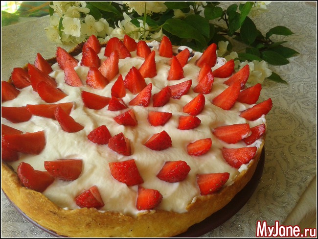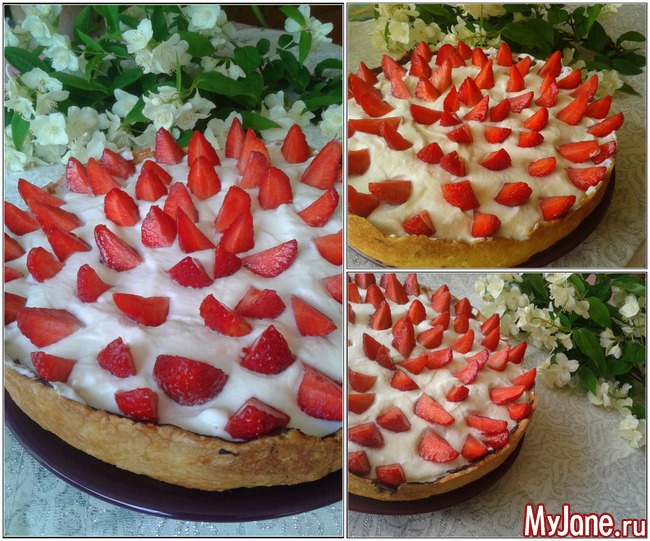 Выложить сверху порезанную на кусочки клубнику. Можно украсить листьями мяты. Подавать сразу!