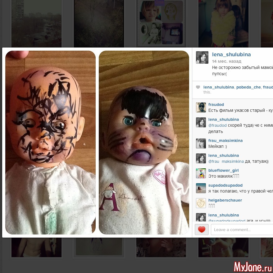 Все дети разные, мои если что-то нечаянно ломают тоже расстраиваются. Но видимо разрисовать доя них не значит сломать. Они до сих пор играют правой куклой и разрисованный лоб их никак не смущает))