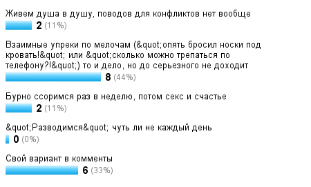 Взаимные упреки по мелочам ("опять бросил носки под кровать!" или "сколько можно трепаться по телефону?!") то и дело, но до серьезного не доходит