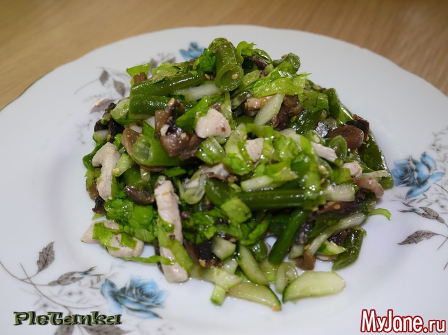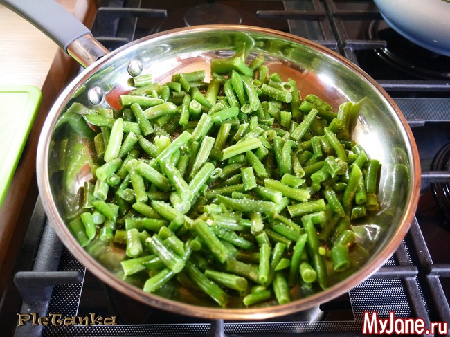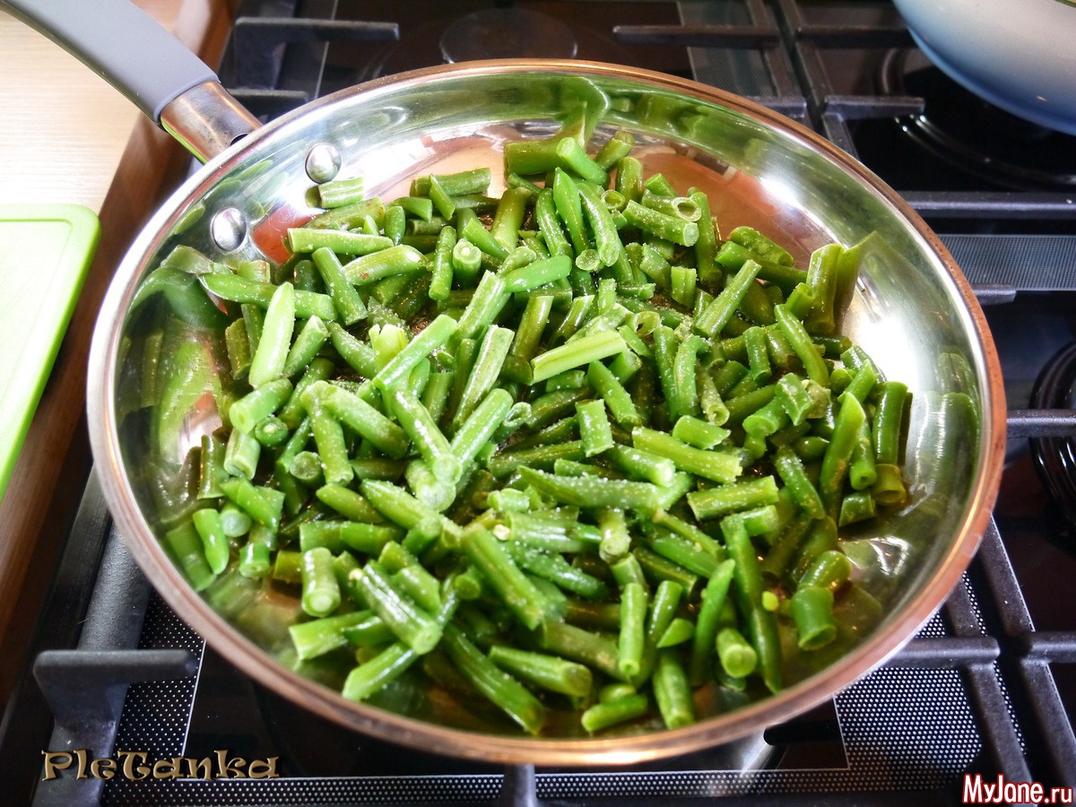 Фасоль посолить и потушить на небольшом количестве растительного масла. Выложить в салатник.