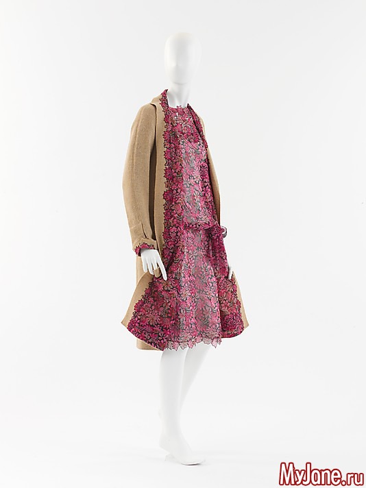 Платье из ацетатного шелка и летнее пальто из плотной хлопково-льняной ткани.