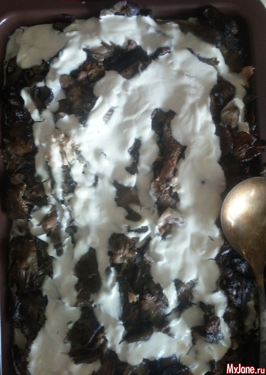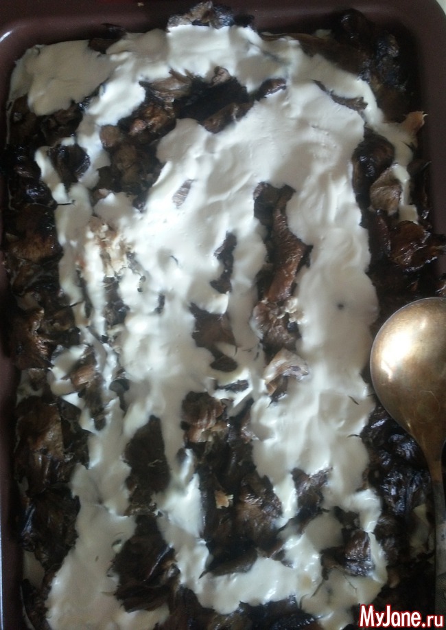 Поливаем сливками. И на этом тоже можно остановится. Но моим домашним было бы слишком постно, поэтому я добавила сверху еще и сметаны.