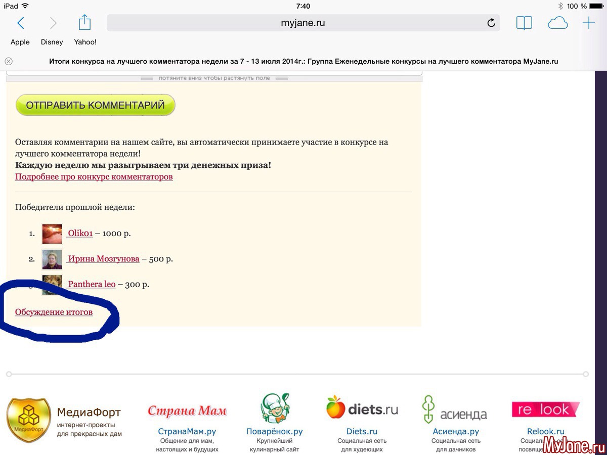 Итоги конкурса на лучшего комментатора недели за 7 - 13 июля 2014г.