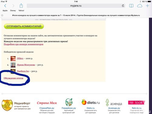 Но главная интрига в том, что результаты активности оцениваются с 7 по 13 июля, а за это время "победитель" оставил, как выясняется, только ОДИН комментарий из тех 13-ти, что у него вообще написаны. Можно посмотреть в его профиле....
