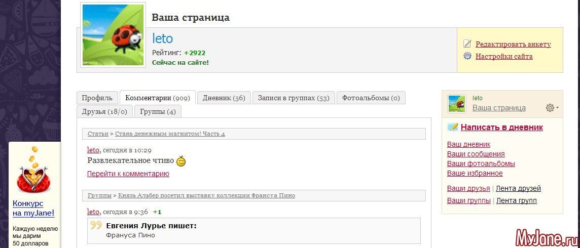отметив, что количество комментариев у меня 908, я комментирую статью https://www.myjane.ru/articles/text/?id=4752 от 30 апреля 2008 г, далее отправляюсь в свой профиль и....