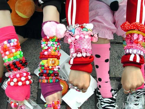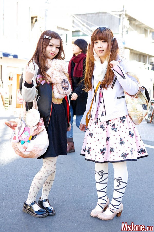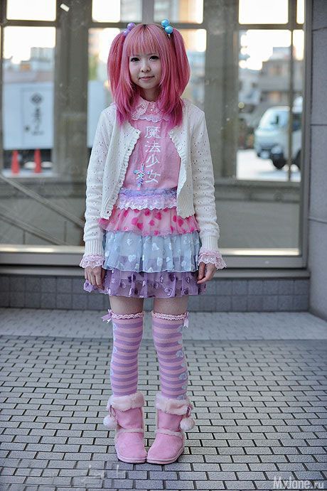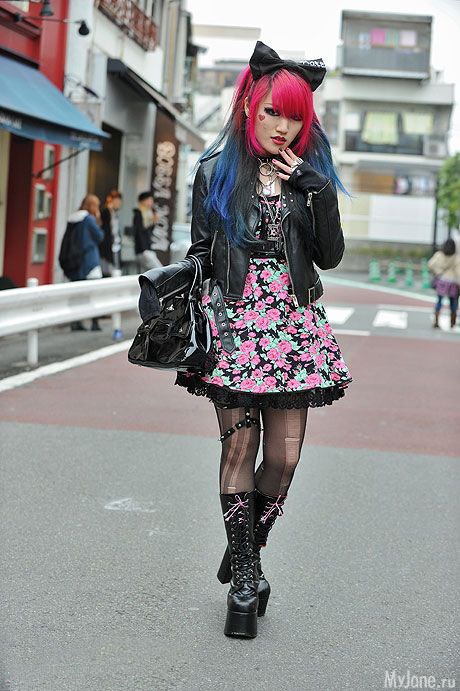Harajuku – данный стиль получил от названия улицы. Он подразумевает традиционные элементы японской одежды, как кимоно и гета в сочетании с яркими кричащими цветами. Основные цвета это розовый и черный, но не обязательно. Используются все цвета, которые заставят прохожего обернуться. И с другой стороны это довольно демократичный стиль, так как его сконструировать возможно из вещей, которые можно найти в любом магазине, добавив кучу модных заколок и скажем леденец.