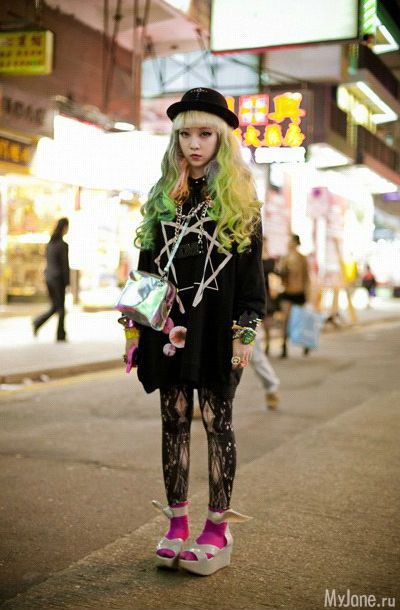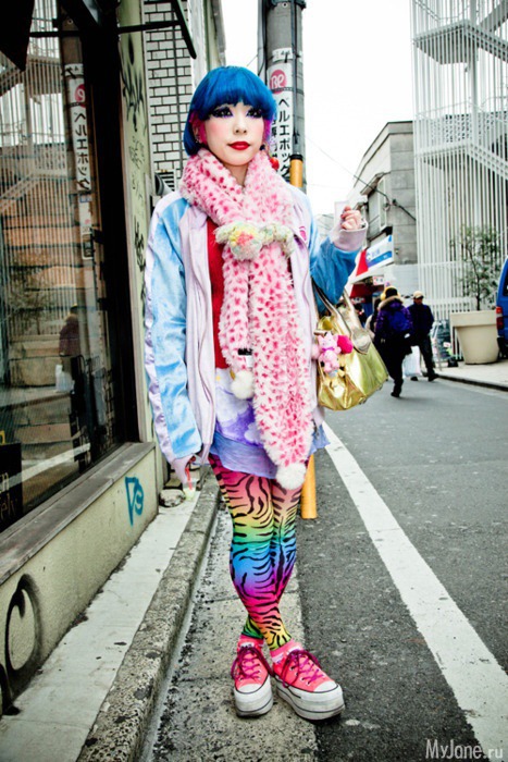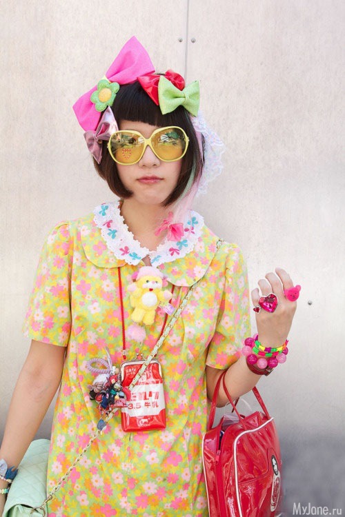 Это сочетание невероятных цветов, аксессуаров и разных стилей. Но сочетание настолько невероятное, что только японские женщины могут это носить с такой элегантностью.
