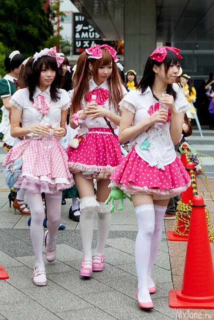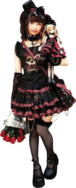 Как ни странно, но к набоковской Лолите это не имеет никакого отношения. Это совмещение тяжелого стиля гота и трогательность маленькой девочки. Это стиль обеспеченной молодежи. Костюмы приходится шить на заказ или покупать в специальном магазине. Так просто элементы наряда не найти. В образ входят и кукольные корсеты, как правило темных цветов, обувь на невероятной платформе, и кружевные юбки, перчатки а-ля 19-век Европы.