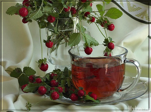 Чай из земляники. Можно использовать так же малину, клубнику. Помните, что малина обладает еще и жаропонижающим и потогонными свойствами.