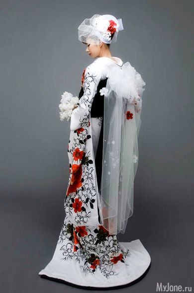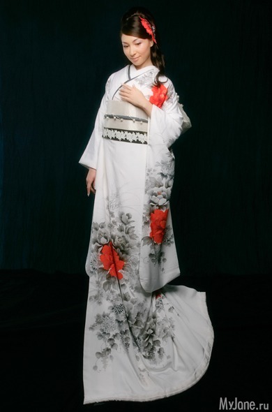 Вообще, просматривая популярные свадебные платья Японии, там можно как раз встретить европейские платья, но совершенно цветные и с большими очень крупными цветами в декоре.