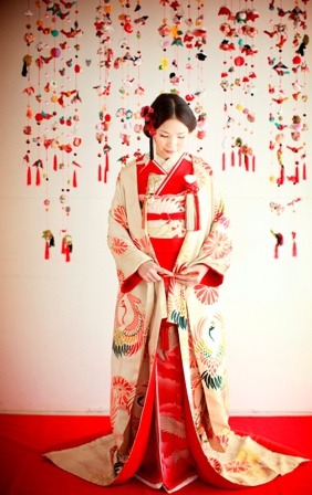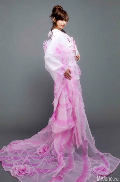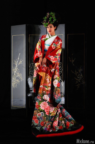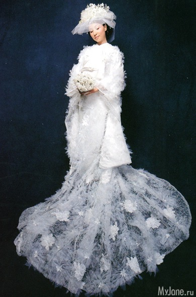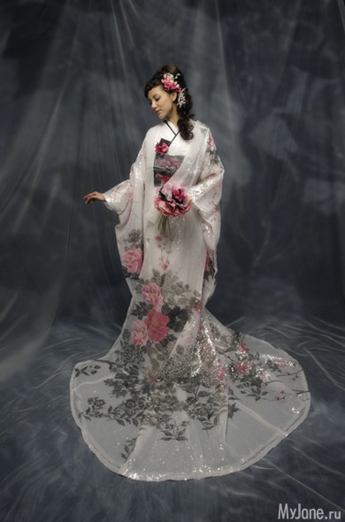 Япония. У них правда на данный момент очень модно все европейское. Но есть платья и со своим национальными традициями. Тут к сожалению, с переводом тяжко, особенно когда не знаешь японского. В общем чтоб не быть испорченным телефоном, не буду утверждать, что некоторые кимоно только стилизованы, возможно они отвечают всем требованиям свадебного кимоно и сохранили 100% историческую ценность.