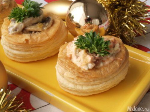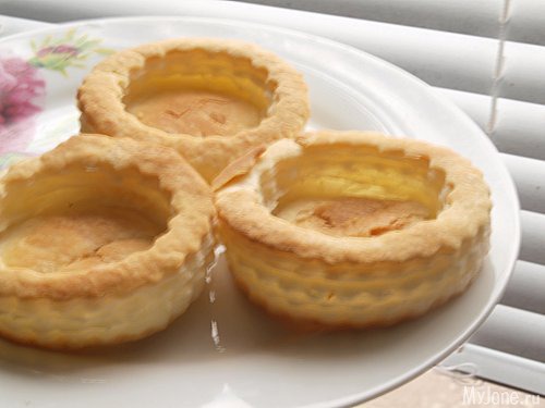 1. При помощи формочки большего диаметра вырезать из слоеного теста кружки.