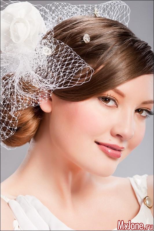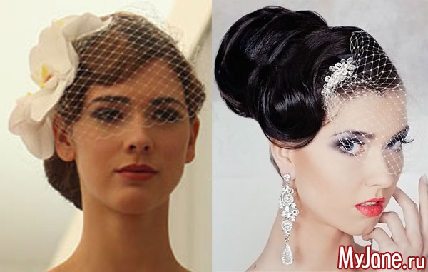 Вуалетка придаёт невесте шарм и загадочность. Одно только присутствие вуалетки в образе уже выделит её из общего ряда невест. Вуалетку можно «надеть», практически прикрывая лицо, но чаще всего стилисты крепят её чуть на бок, ассиметрично, так, чтобы она закрывала часть причёски и открывала лицо невесты.
