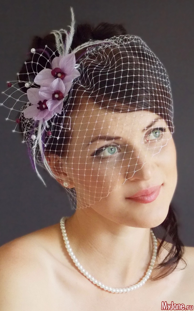 Вуалетку можно носить саму по себе, а можно дополнить её самыми разными аксессуарами – гребнем, шёлковым цветком или украшением, перьями, брошкой. Как правило, эти аксессуары крепятся у основания вуалетки.