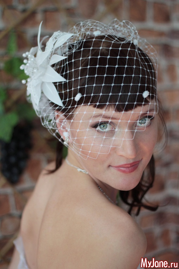 Первое, что приходит в голову при словах «образ невесты в стиле ретро» — это, конечно, вуалетка. С её помощью можно создать красивый и одновременно немного таинственный образ невесты.