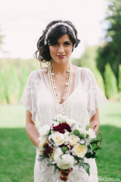 Трессуар – этим словом мы обозначим достаточно широкий вид аксессуаров, который крепится на лбу. В качестве него могут выступать не только повязки разной ширины, формы и из разного материала. Не нужно путать трессуар с различными аксессуарами, которые также крепятся на лбу и которые используются невестами в соответствии со своими национальными традициями. В качестве трессуара также могут использоваться те же подвески на шею, так они, впрочем, очень часто и используются невестами за рубежом. Они легко крепятся невидимками под волосами, и при условии правильного крепления будут прочно держаться весь свадебный день.