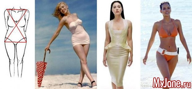 У типа фигуры «Песочные часы» узкая талия и примерно одинаковый объем бедер и груди. Иными словами это классическая, пропорциональная, хорошо сложенная женская фигура. Любой дисбаланс и недостатки как правило довольно легко исправляются контролем над весом.