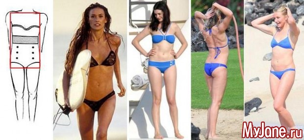 Женщина–«прямоугольник» имеет одинаковые по ширине плечи и бедра. Из-за широкой талии фигура имеет вид прямоугольника. Такие женщины больше других склонны к полноте. Именно полнота делает фигуру еще больше похожей на прямоугольник (плюс начинает выступать живот). Потеря веса, напротив, изменяет фигуру в лучшую сторону, и она становится почти идеальной.