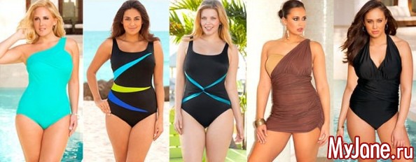 Пышным дамам визуально придать фигуре стройности помогут широко расставленные не узкие лямки, глубокие декольте, вертикальные вставки или узоры. Им рекомендуется приобретать модели темных цветов из матовой эластичной ткани. Прекрасным выбором станут утягивающие купальники. Хорошо подойдут изделия, состоящие из майки и шортиков.