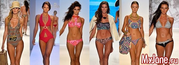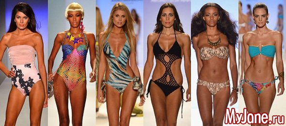 Чтобы привлечь внимание к своим достоинствам используйте яркие оттенки, а с помощью темных – скрывайте недостатки. Ноги будут смотреться длиннее и стройнее, если вы наденете купальник с завышенными в области бедер вырезами. Юбки с рюшами визуально расширят бедра, а лифы, которые завязываются на шее, увеличат плечи.