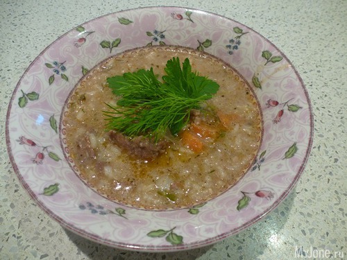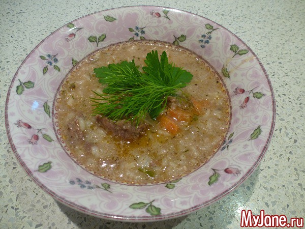 Старший, накладывая себе тарелочку с горкой, одобрительно назвал суп "жидким пловом"