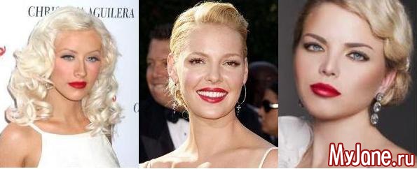 Ну, а для вечернего макияжа прекрасно подойдет красная или бордовая помада. Однако помните золотое правило: цвет помады не должен быть ярче цвета волос!.