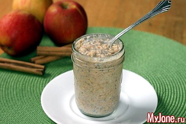 Овсянка в банке с яблоком и корицей.