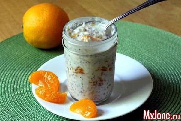 Овсянка в банке с мандарином и апельсином.