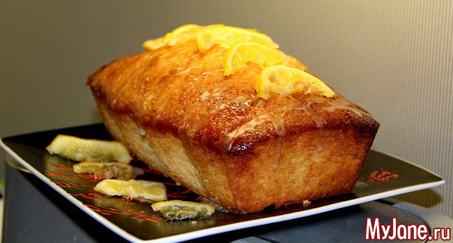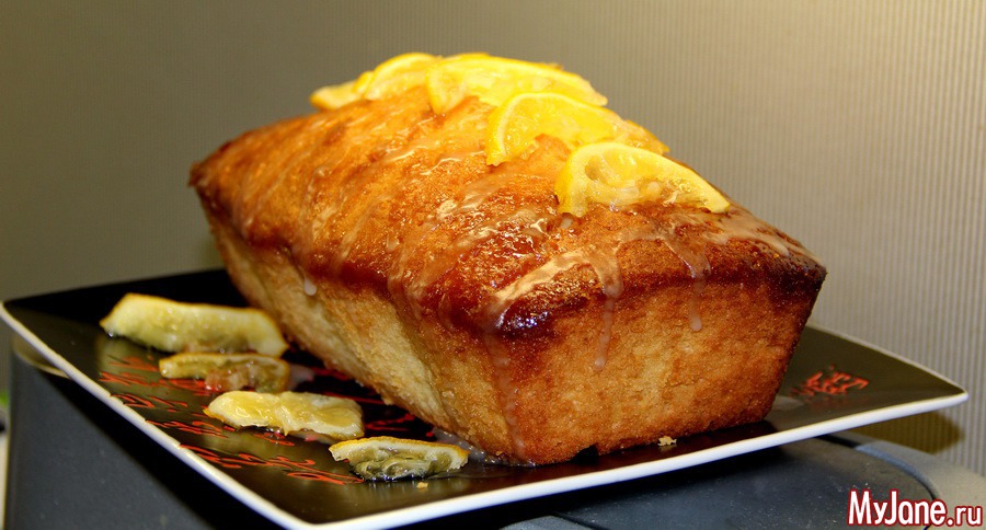 Достав готовый кекс из духовки, часто наколите его спичкой и полейте лимонным сиропом. Остудите изделие в форме. Украсьте дольками лимона.