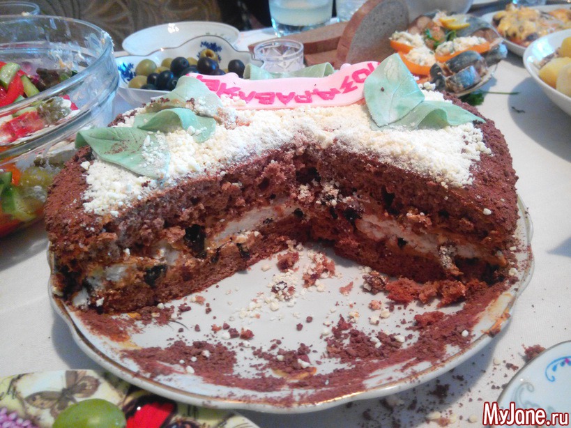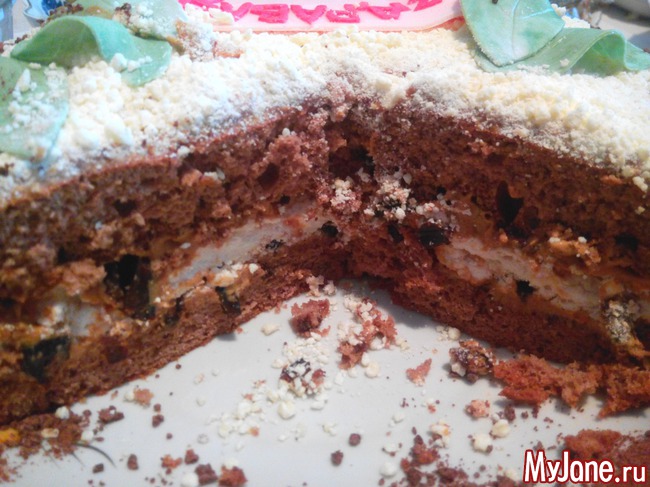 Не приторный, но лично для меня за сладкий... Все таки и бизе и сгущенка. Бисквит пекла свой. Корж из рецепта что-то у меня не получился, тяжелый какой-то что ли. Орехи не добавляла, добавила чернослив.