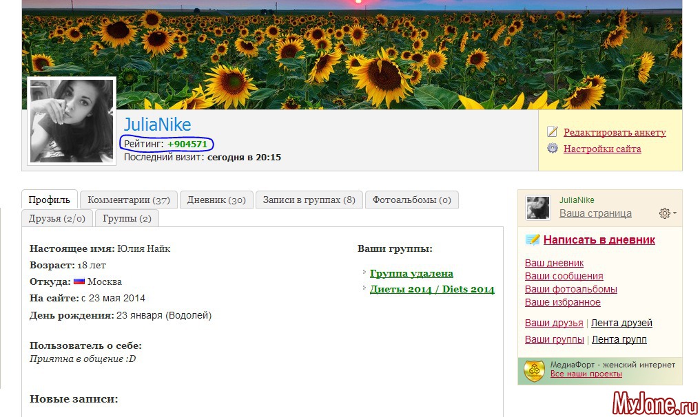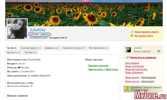 А теперь зайдите на мою страницу и посмотрите рейтинг