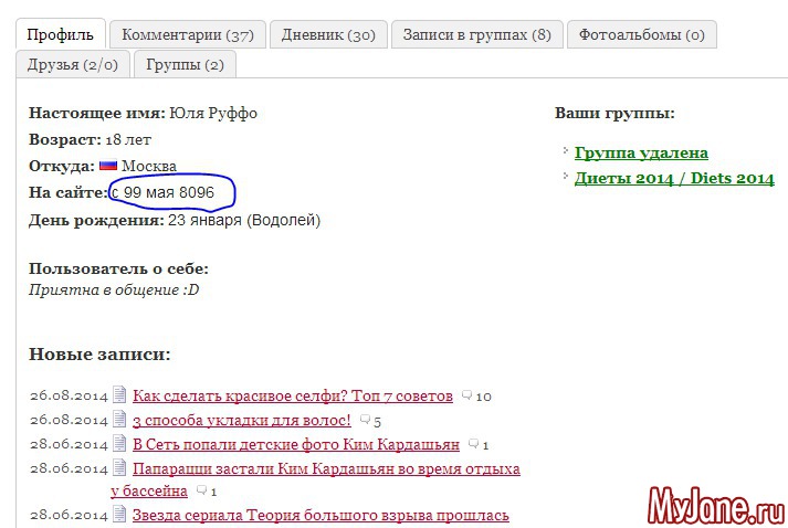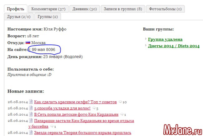 А теперь зайдите на мою страницу и посмотрите эту надпись