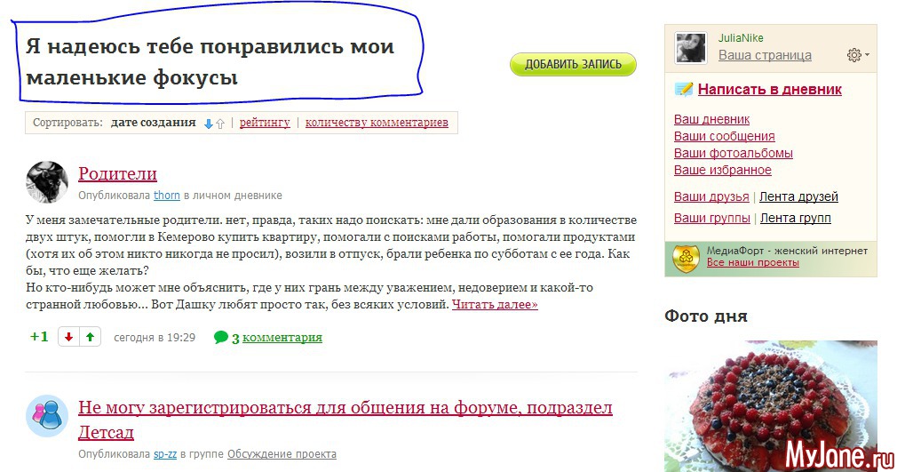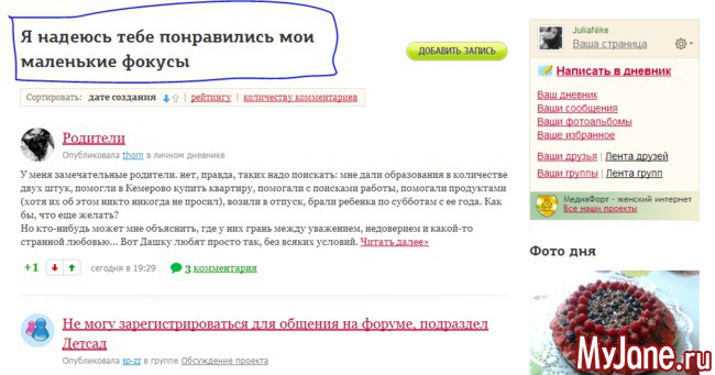 А теперь зайдите в свои "Новые записи" (дневник), и посмотрите