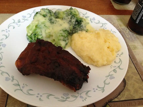 гурманствуем - рёбра пос соусом барбекью с сырно-чесночным пюре и брокколи под соусом холондэйз